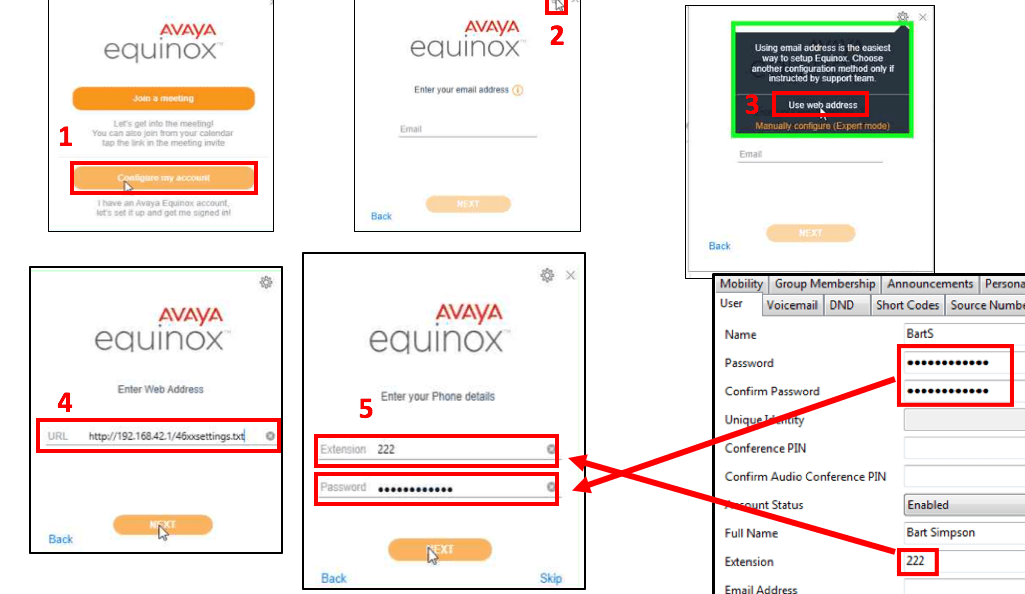 - If the pc you have Equinox on can reach that URL, you will get the EXTN login…enter Extension number and the Application password. See the reference from the configuration.