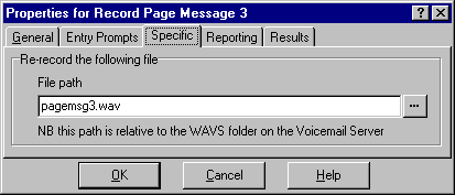 A Play List action was added and in this example set to record pagemsg3.wav. Note that just the file name was specified as this action saves files relative to the Voicemail Server’s WAVS folder.